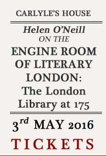 The London Library opened its doors for the first time on 3 May 1841 and celebrates its 175th anniversary this year. The Library is unique and has remained at the heart of literary London over three consecutive centuries. Using institutional archival records and books from the Library’s million strong book collection Helen O’Neill takes us on whirlwind journey through 175 years of London Library life, in the home of its founder, Thomas Carlyle.